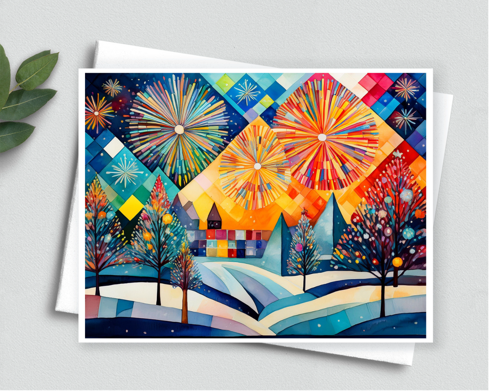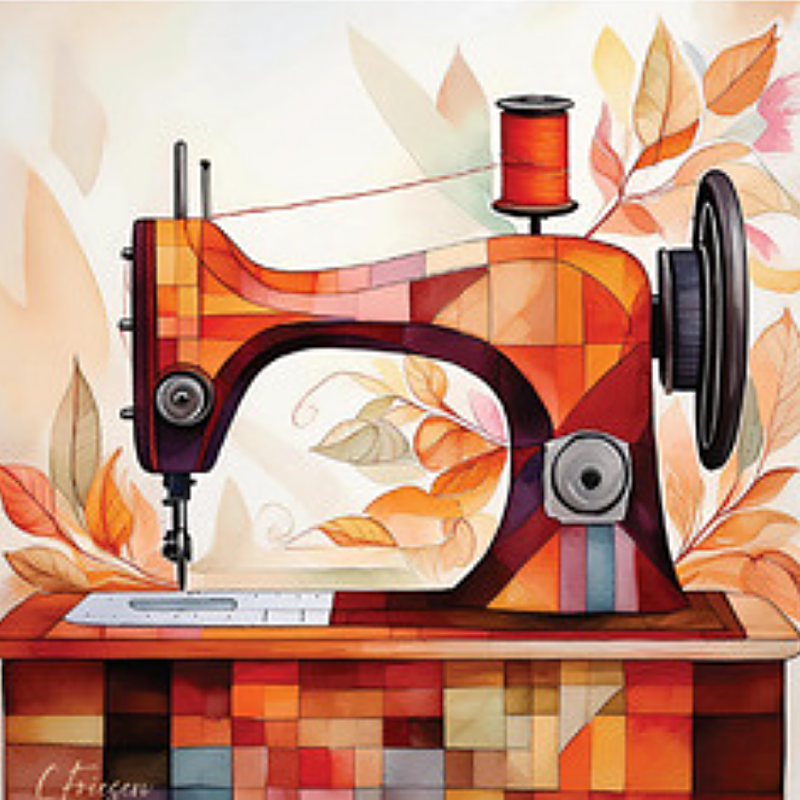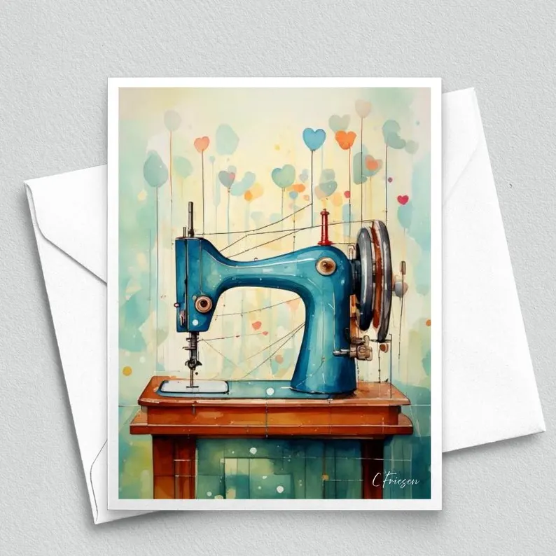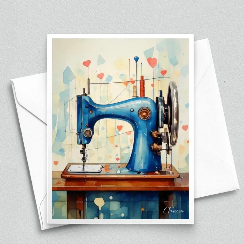 Boxed Set of Blank Greeting Cards, 4 Designs, Watercolor Cubist Artwork, Quilting & Sewing