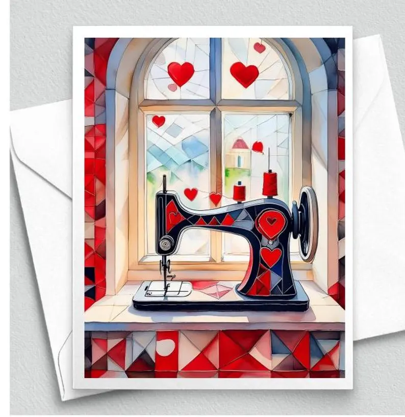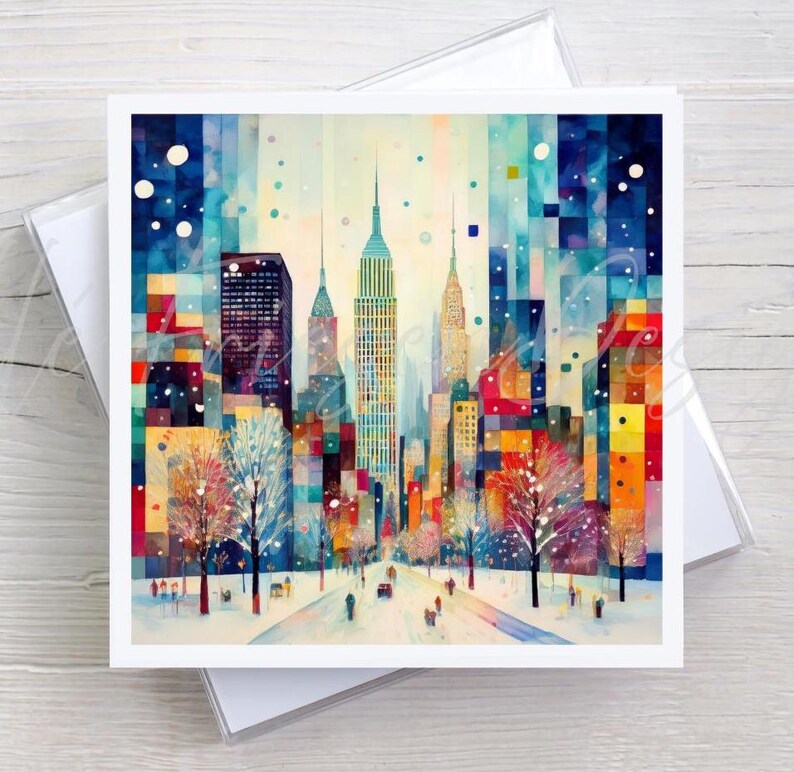 Midwinter Splendor Greeting 6 Card Boxed Set, Watercolor Cubist Artwork, Quilting & Sewing Gifts Notecard, Framable Art Card, Quilt Snow Day