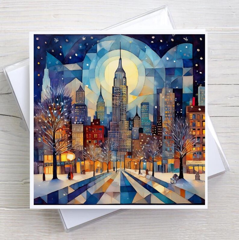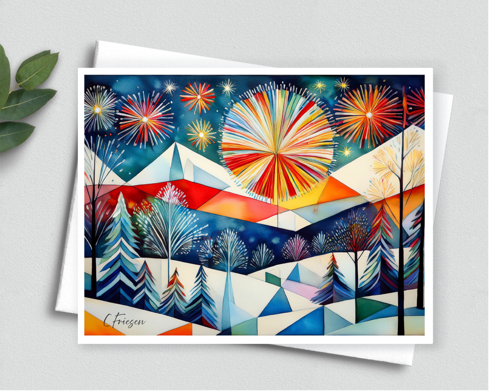 Sewing Room Snow Day Greeting Card Boxed Set, 5 Designs, Watercolor Cubist Artwork, Quilting & Sewing Gifts Notecards, Framable Art Cards