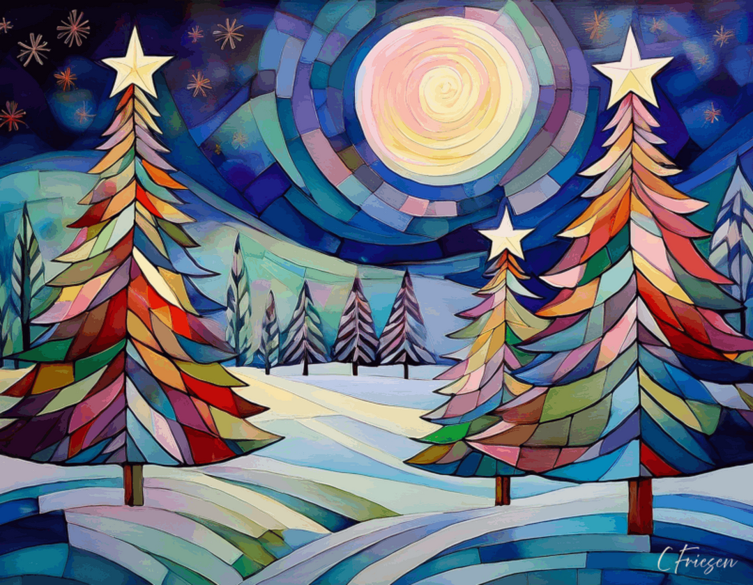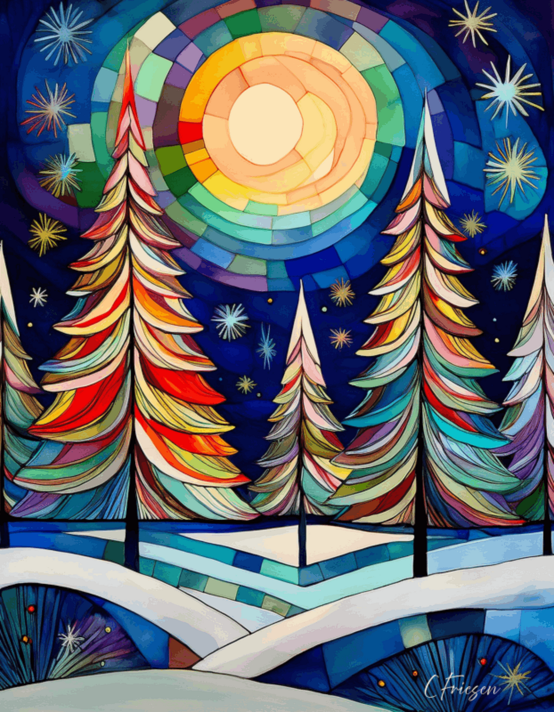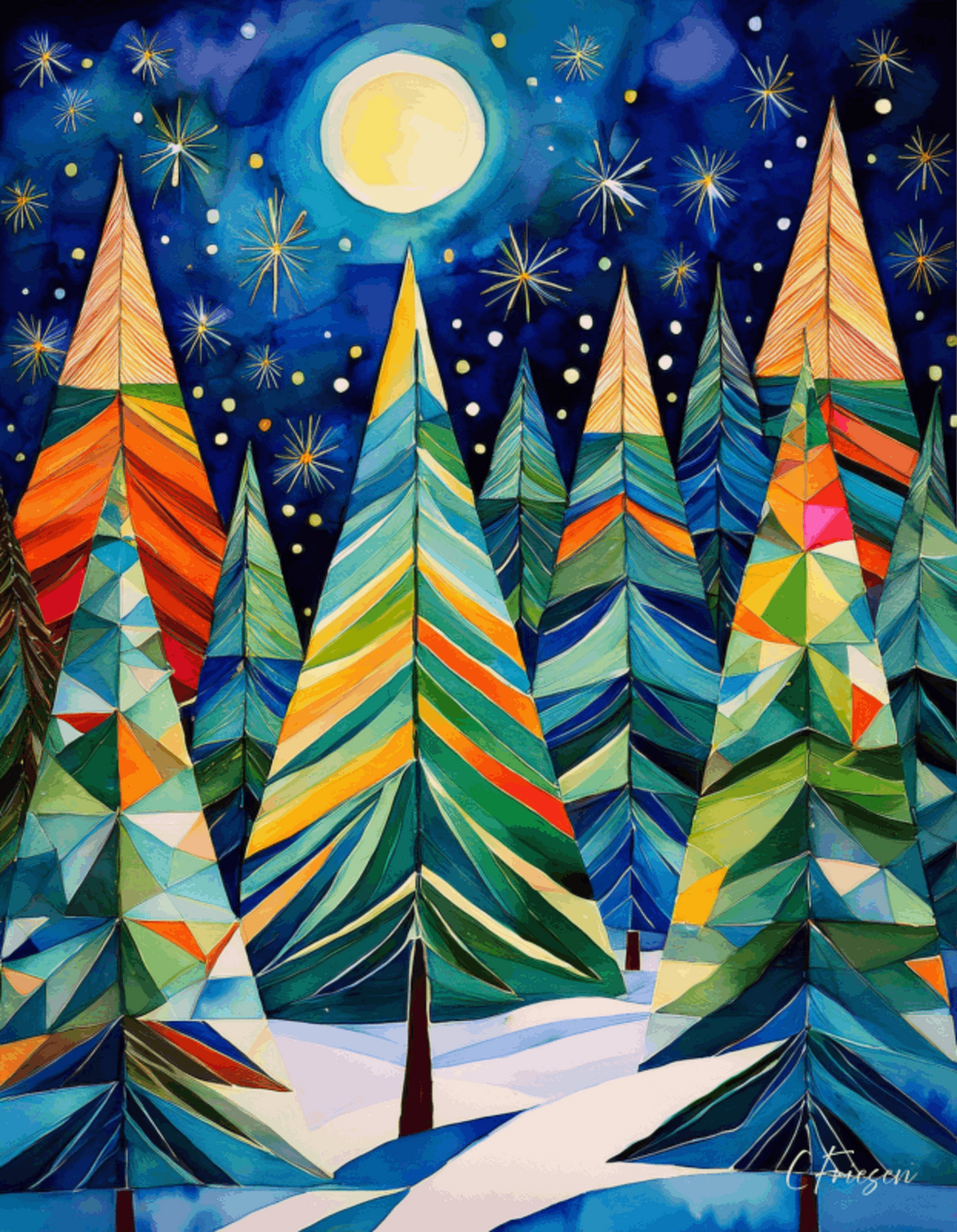 Holiday Greeting Card, A Midnight Clear, Rainbow Holiday Tree, Watercolor Artwork, Christmas Cards, Quilters & Sewer Gifts