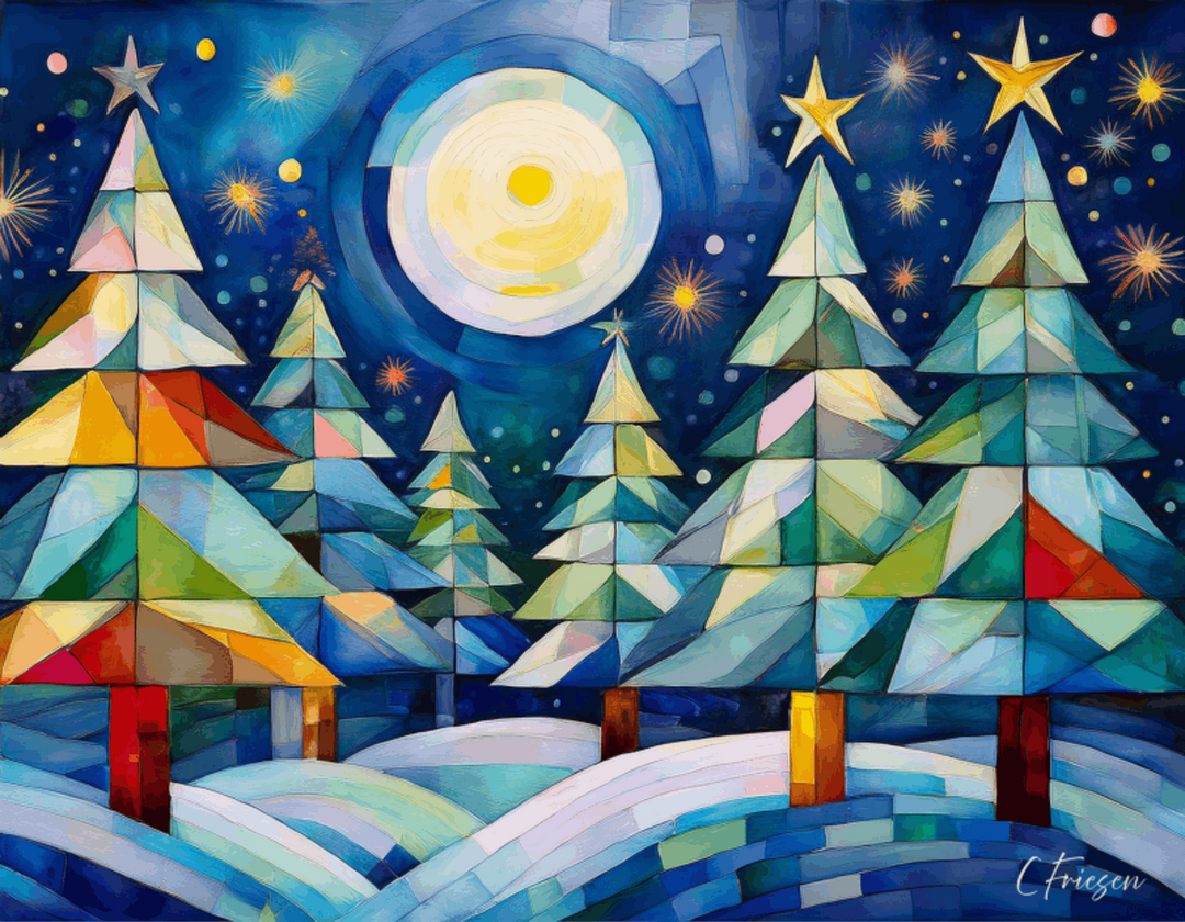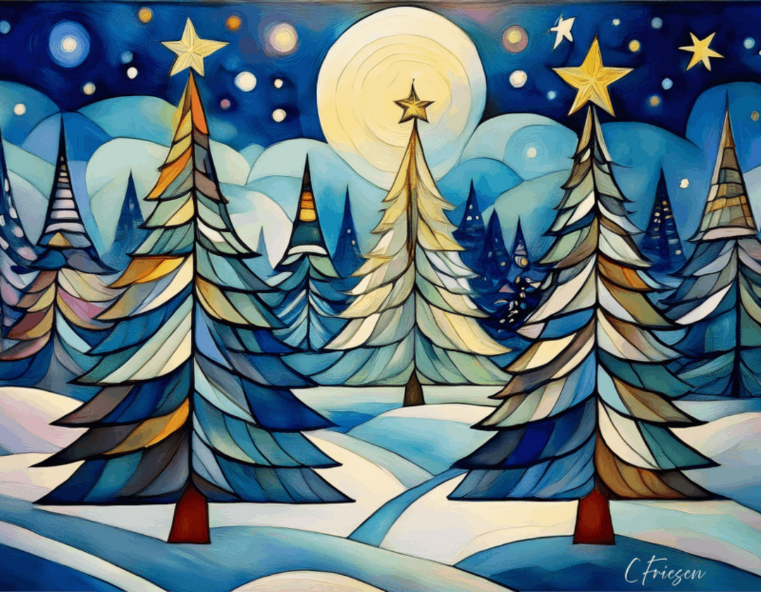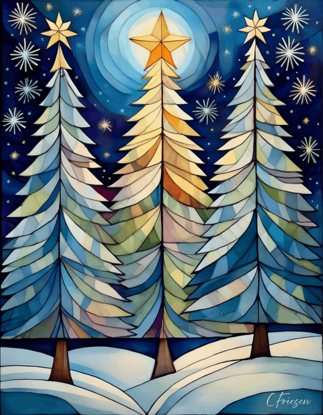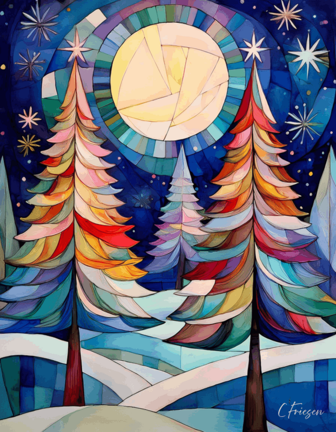 Holiday Greeting Card, A Midnight Clear, Rainbow Holiday Tree, Watercolor Artwork, Christmas Cards, Quilters & Sewer Gifts