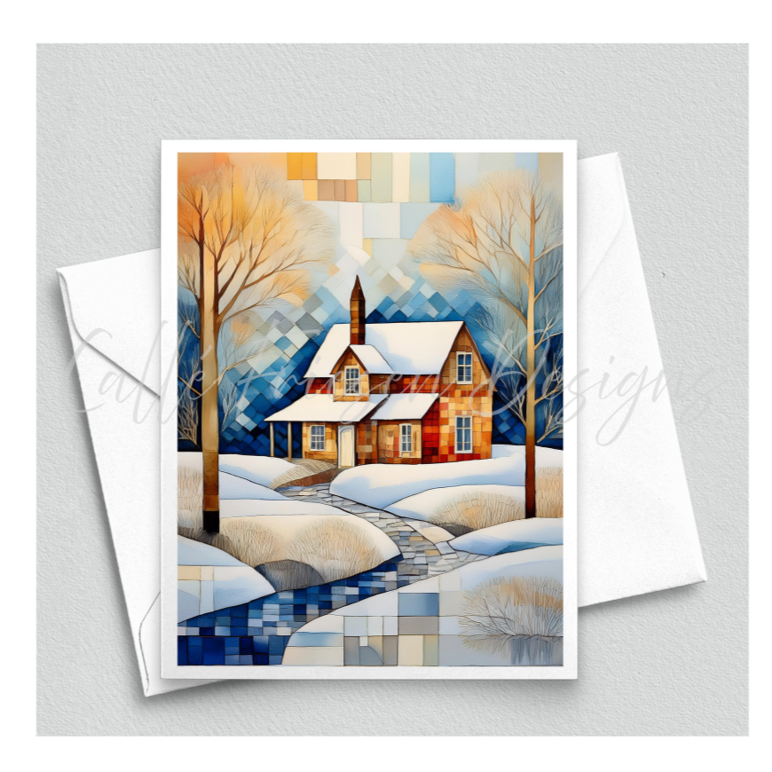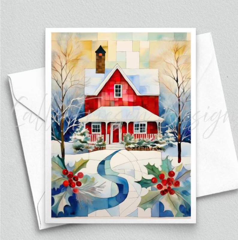 Home for the Holidays Greeting 8 Card Boxed Set, 4 Designs, Watercolor Cubist Artwork, Quilting & Sewing Gifts Notecards, Framable Art Cards
